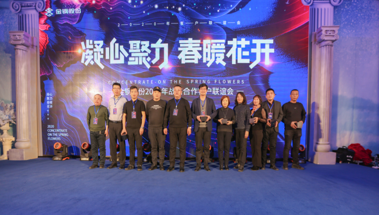 公司邀請48戶核心戰(zhàn)略合作伙伴共計180余人參加了會議。會上,公司黨委書記、董事長沈江山首先致歡迎詞;隨后部分客戶代表發(fā)表會議致辭(廣州廣鋼新材料公司、上海金通物產(chǎn)公司、黑龍江現(xiàn)代紅嘴鋼鐵經(jīng)銷公司、遼寧固存興鋼鐵供應(yīng)鏈管理公司、瓦房店軸承股份公司、遼寧方大國際貿(mào)易公司),我的鋼鐵網(wǎng)資深分析師甘遐勇先生做了《2020年國內(nèi)鋼礦市場回顧及2021年行業(yè)發(fā)展展望》專題報告;銷售處長、供應(yīng)處長宣布了2020年金牌分銷商、金牌供應(yīng)商評選結(jié)果并主持頒獎。最后,公司總經(jīng)理蔣俊對金鋼股份2020年工作進(jìn)行了簡要總結(jié),對2020年品牌建設(shè)、市場開發(fā)、經(jīng)營業(yè)績進(jìn)行了全面盤點,對2021年經(jīng)營目標(biāo)、計劃安排、市場布局、營銷重點進(jìn)行了重點介紹,并對下一步客戶合作提出了新的目標(biāo)和期望。會后進(jìn)行了答謝酒會。