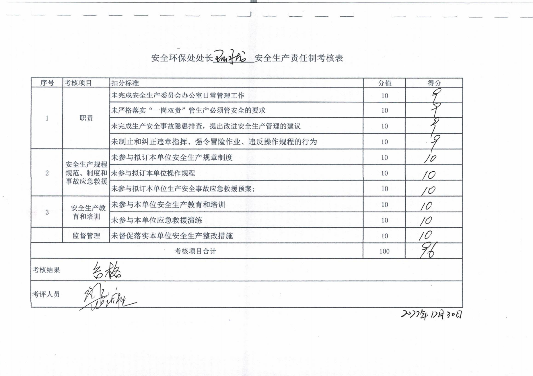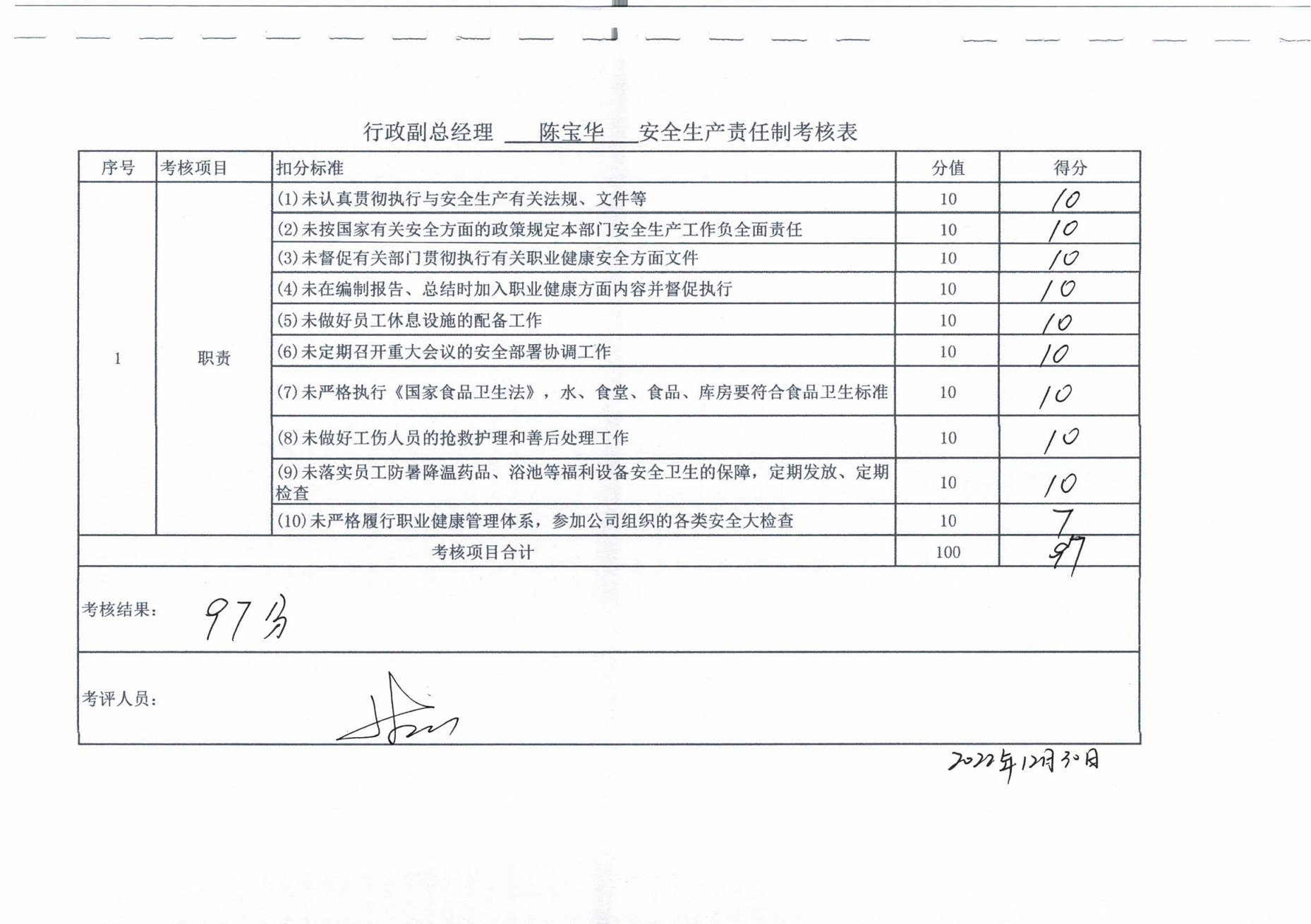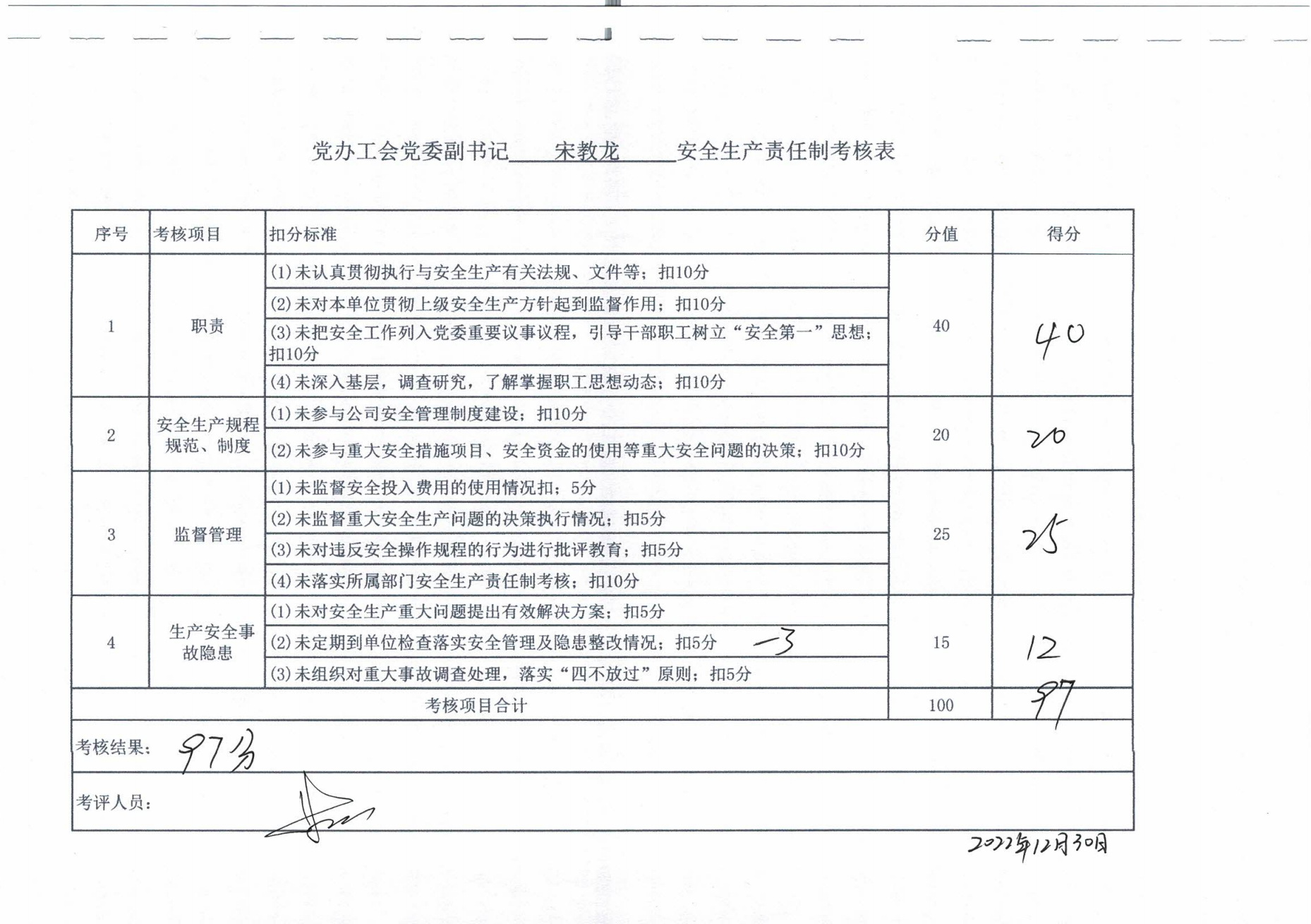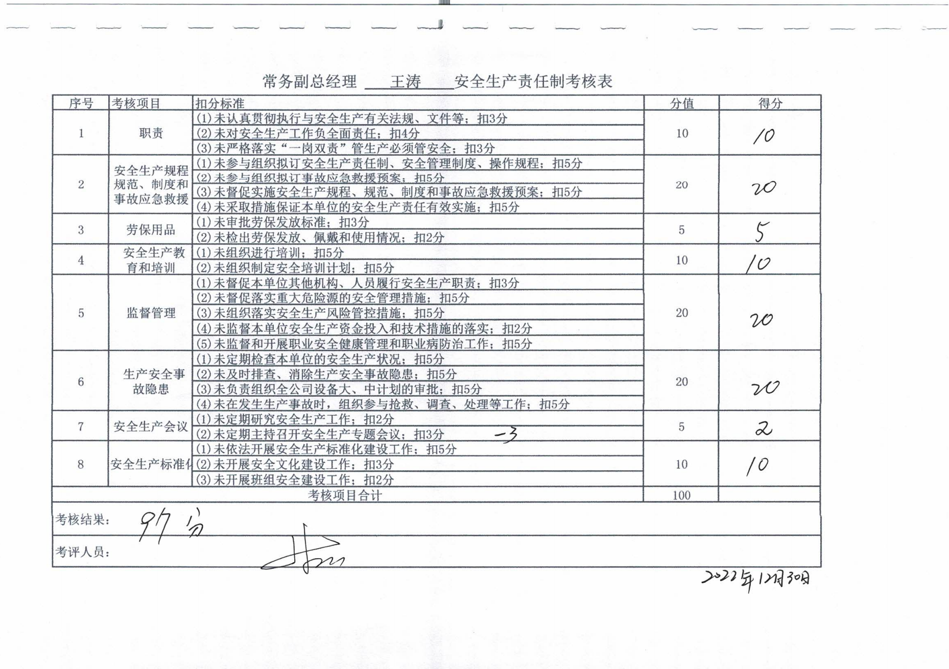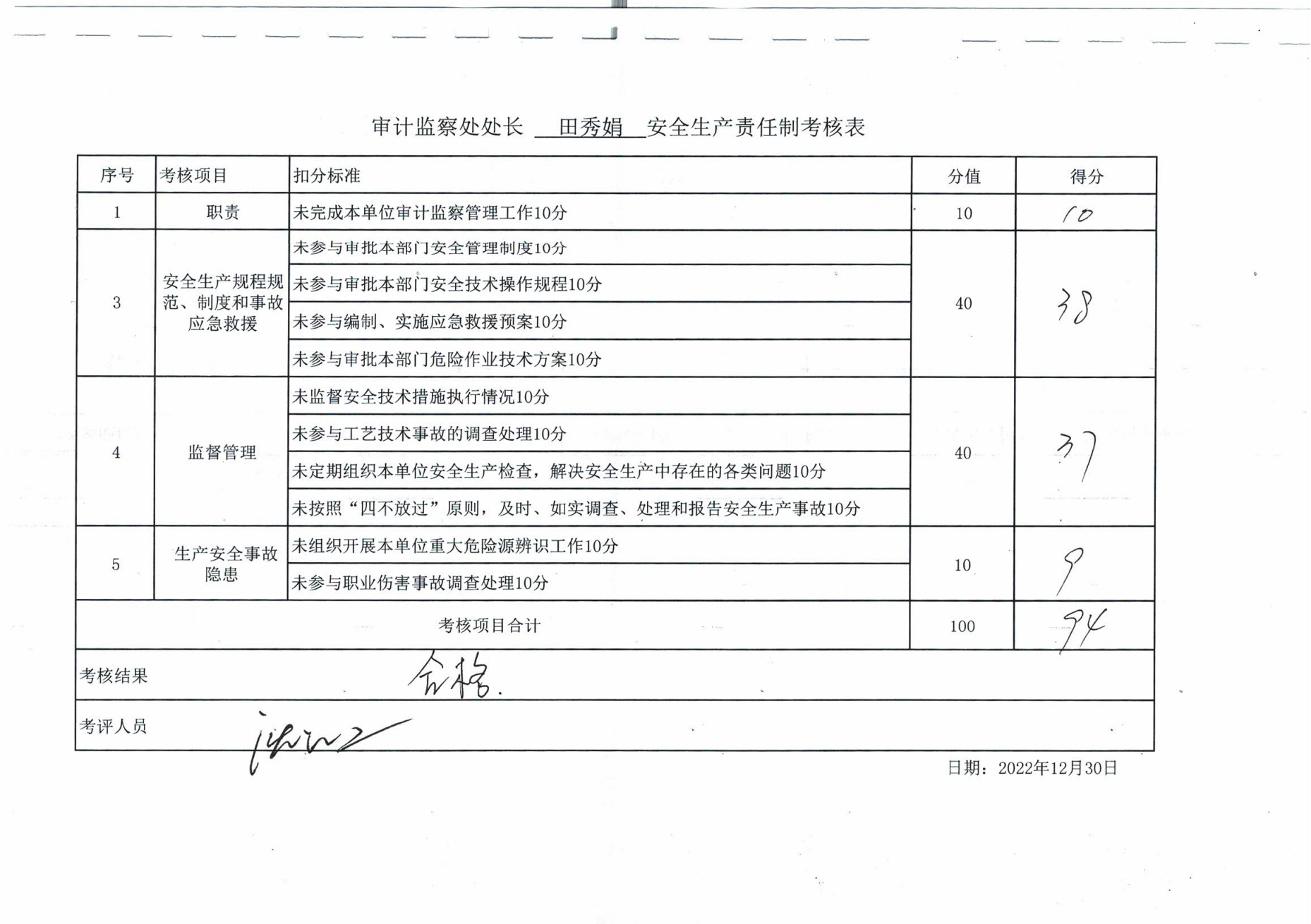 2022年主要負責人安全生產責任制考核公示